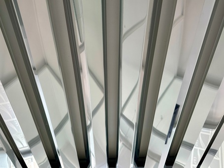 Die abgehängte ORIGINAL DOBNER Metalldecke MW-100 aus superleichtem Aluminium-MW-Baffles eröffnet Ihnen neue Dimensionen modernen Raumdesigns.