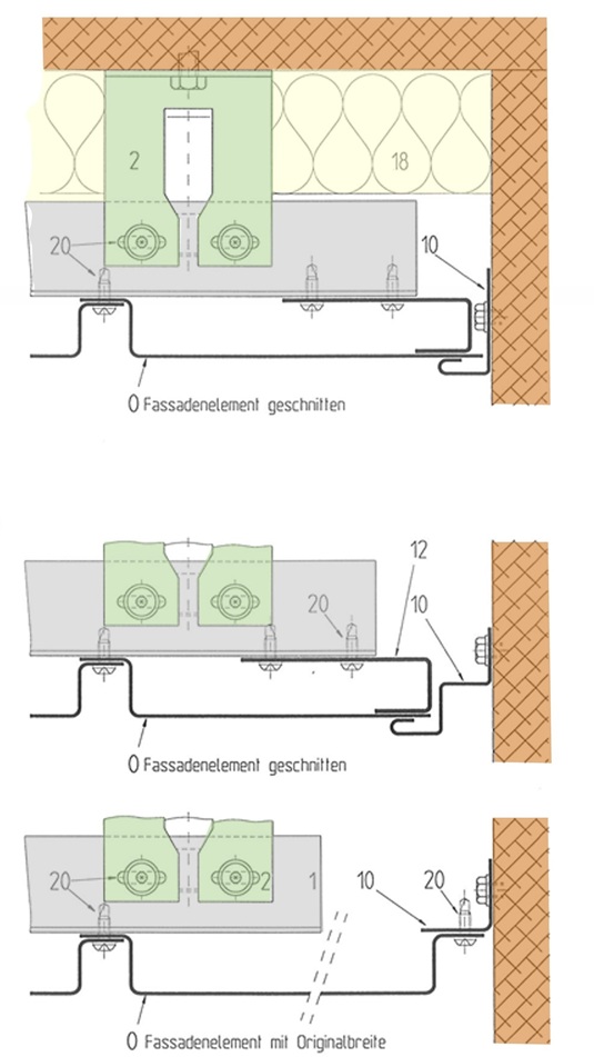 Alle am Bau erforderlichen Anschlüsse sind möglich. Durch die sehr stabile Profilierung und der Paneelhöhe von 12,5 mm sind schlagregensichere und sturmwindtaugliche Fassadenbekleidungen gewährleistet.