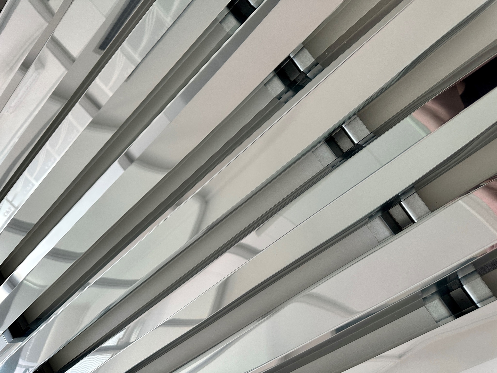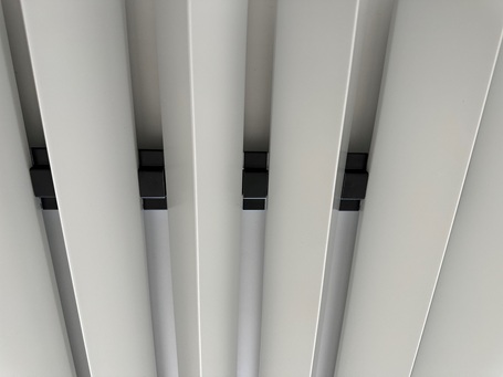 Weiterhin haben Sie die Möglichkeit, verschiedenfarbige MW-Baffles zu mischen. Auch können Sie farbige LED-Strips zwischen den einzelnen Baffles integrieren. Bei sehr langen Räumen, wie z.B. Airport Terminals kann jede zweite Reihen ausgelassen werden und dadurch Kosten bis zu 45 % eingespart werden.
